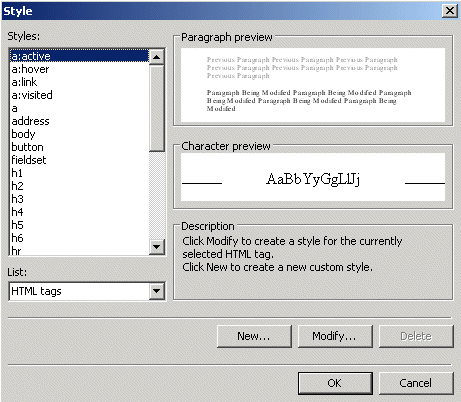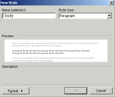 To do that, with you index.htm page open, click on Format>Style Sheet
