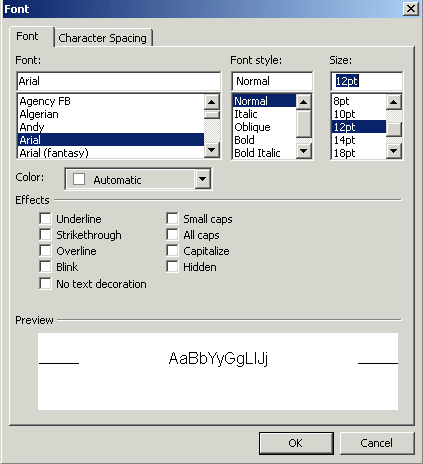use, the font style, font size, font color and effects.